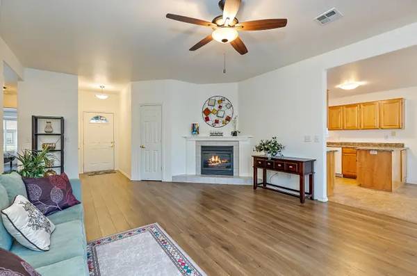 Tastefully updated and well-maintained single level Birchwood home. Designed for easy access and comfortable living, this two-bedroom, two-bathroom home has coffered ceilings, open bright floor plan with gas fireplace and private fenced patio area. New furnace in '23, brand new range, newer hot water heater. Great location, convenient to shopping, YMCA, banks and bus line. Attached garage is finished and painted. Lovely home