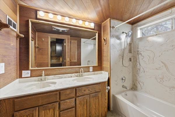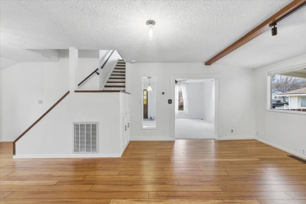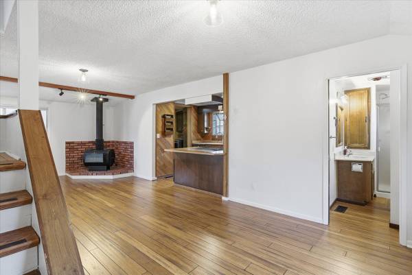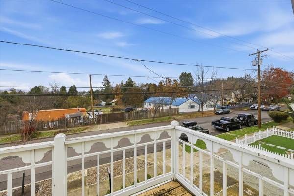Located just a short distance from Ashland's bustling downtown Plaza, this attractive 3-bedroom, 2-bathroom home combines historical charm with modern amenities. The main level features an open floor plan with a cozy living area, an eating space with a freestanding wood stove, a kitchen with ample storage, a laundry/mudroom, a bedroom, and two bathrooms (one with a traditional steam sauna). Upstairs, there are two additional bedrooms and a balcony off the hallway that offers stunning views. The property includes a private gated carport, a fenced backyard, and a detached oversized single-car garage with a workshop. The roof, hot water heater, heating, and air conditioning systems have all been replaced within the last five years.