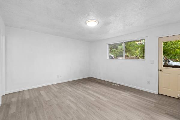 This updated home sits on a corner lot in the peaceful Terra Linda neighborhood, surrounded by mature trees that create a private, retreat-like setting. Inside, the home features fresh paint, new lighting, luxury vinyl plank flooring, and new carpet throughout. The main level offers two bedrooms and two bathrooms, including a spacious primary suite with dual closets and a jetted tub. Upstairs is a separate flex space (third bedroom) with its own private entrance, perfect for a studio, home office, or guest suite.