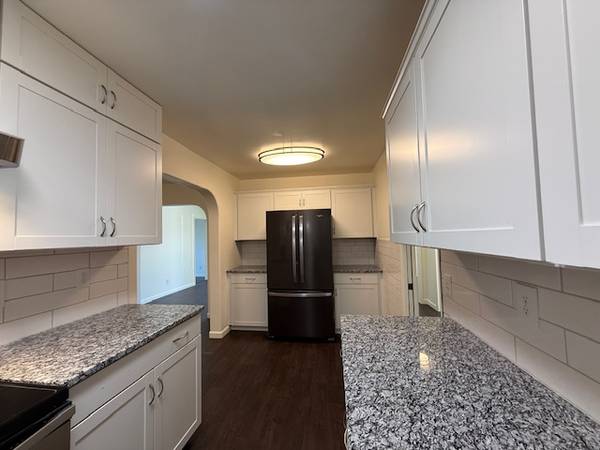 Enjoy a piece of Ashland history. This five bedroom two bath, or four bedrooms with an office was once Ashland's radio station. Newly redone, this bright space has many rooms with a versatile layout. Vinyl plank flooring throughout. Enter into an inviting foyer. Bright living area, formal dining or family room. The kitchen is at the heart of the home. Granite countertops and tons of counterspace. Built-ins on either side of the fridge and so much storage. Spacious bedrooms. Roomy laundry room with washer and dryer. Located in a great neighborhood off W Nevada. Close to the dog park and a short distance to downtown.
