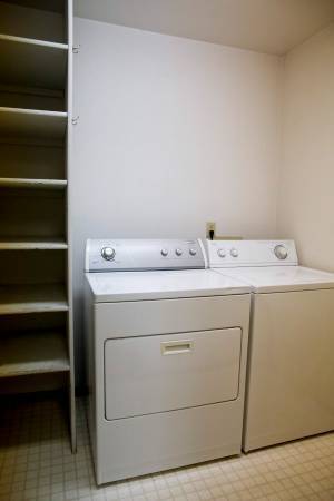 On the other side of the kitchen is the pantry and laundry room (washer and dryer included), which also opens up to the garage.
