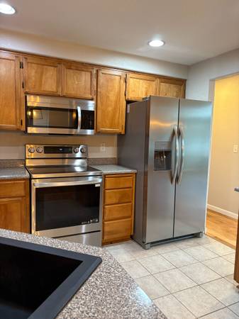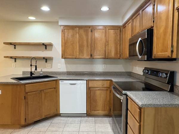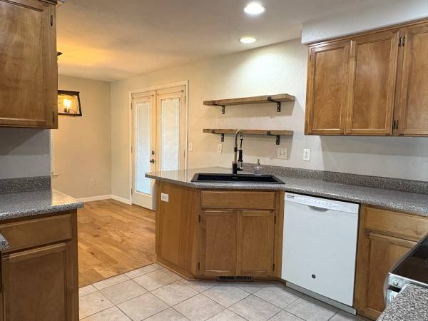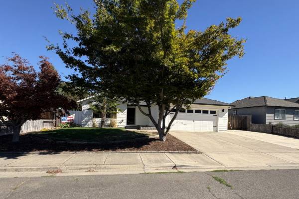 Available now! This lovely 3-bedroom, 2-bath Central Point home sits on a street with minimal traffic & is located just off Beall Lane. Fresh interior & exterior paint, newer real engineered hickory hardwood floors, vaulted ceilings, window coverings, & 2 skylights that fill the home with natural light. The kitchen features a newer stainless-steel range, microwave, fridge, new sink & faucet, an abundance of cabinetry & opens to the dining area. The spacious primary suite features a large walk-in closet & bath. The French doors lead from the dining area to the covered patio & fully-fenced backyard & new custom Trex deck & shed. Fenced RV parking along the side with an RV gate. Interior laundry room with cabinetry with access to the attached 2-car garage. Pet may be considered. Security Deposit $2600.00. Sewer/Garbage paid.