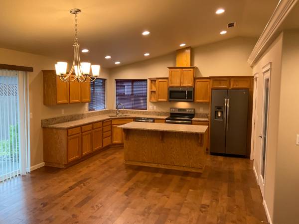 Like new 1604 sq foot, 3 bedroom home with hand scraped wood floors throughout. Large kitchen with center island, vaulted ceilings with skylights, spacious laundryroom, master bedroom with walk in closet and a finished 2 car garage. Professional landscaping included. No pets/no smoking. 1 Year lease required. $2100/month for rent and a $3,000 security deposit. $45 application fee per adult applicant. Please drive by 2722 Eastwood, and then pick up a application at Rogue Valley Property Management 131 NE B Street. You may also utilize our website at www.roguevalleypm.com for applications and additional information