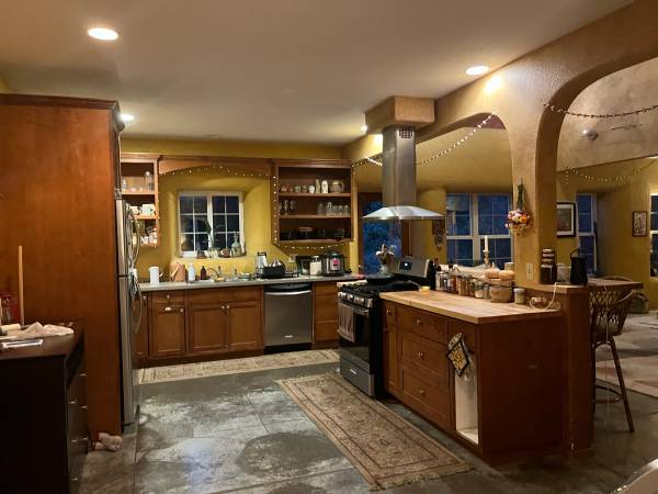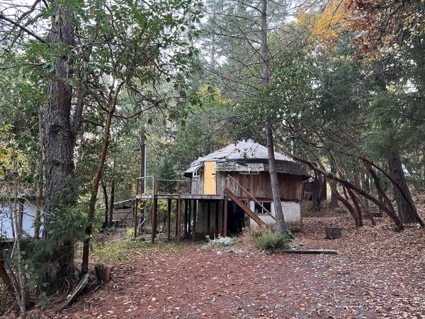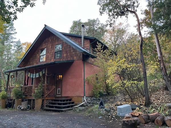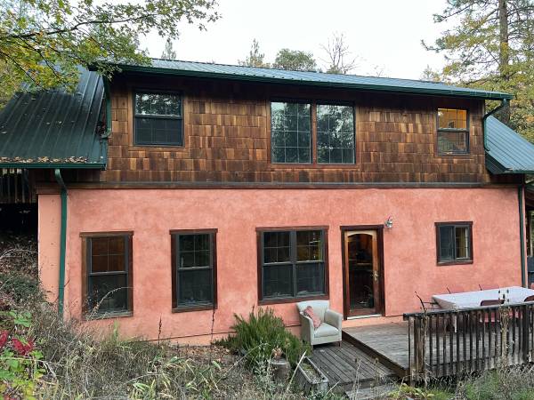 Custom strawbale home w/3bds, 2.5 baths and 1803 sf. Wrap around lower deck and master bedroom opens to upper deck in open floor plan. Skylights and large windows. Strawbale insulation and wood stove keeps you warm and cozy in the winter, yet cool in the summer. Beautiful kitchen with top of the line range, stainless steel appliances, butcher block bar and lots of counterspace. Seasonal Humbug Creek runs through 5.8 acres w/BLM border, large pond, large fenced organic garden with fruit trees, herbs and 2 hoop houses. Shop w/woodstove, and other outbuildings, including 2 story yurt with wood stove. Large pond and 20+gpm well.