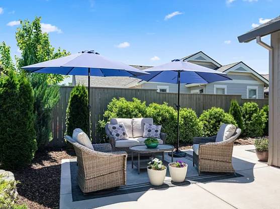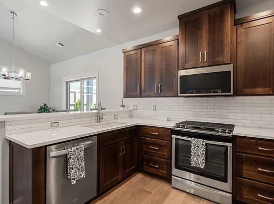 Beautiful East Medford home with 3 bedrooms and 2 bathrooms. The home offers over 1,500 sq.ft. of thoughtfully designed living space on a low-maintenance .12 acre lot in the sought-after Middle Fork development. Built by renowned Mahar Homes, it features brushed oak hardwood floors, custom cabinets, quartz counters, and vaulted ceilings in the great room. The home has a gas fireplace, a concrete patio for outdoor living, and an efficient layout that feels spacious and inviting. The home has a 2-car garage with a fenced backyard. Built in 2022, this home is conveniently located near schools, shopping, and parks!