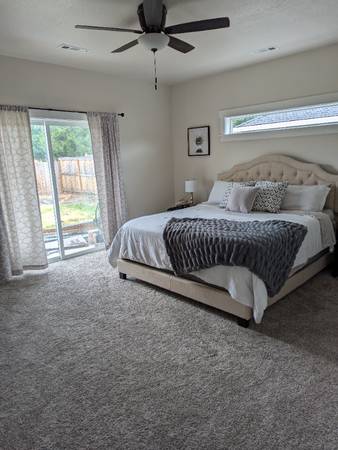 Amenities include a gas stove and oven, Ecobee AC system, heated floor and towel rack in the master bathroom, motion sensor lights in the master bathroom, spacious walk-in closets in all rooms, plenty of backyard space. 85 inch Samsung Smart TV with sound bar & subwoofer. Washer, dryer, microwave, and refrigerator available. Garage and street parking available. The home is conveniently located in Phoenix, OR off of Colver Road. The backyard backs into Colver park with a cute walking trail that connects to the neighborhood street. The neighborhood is very quiet and family friendly. Families and/or roommates are welcome to apply!!!