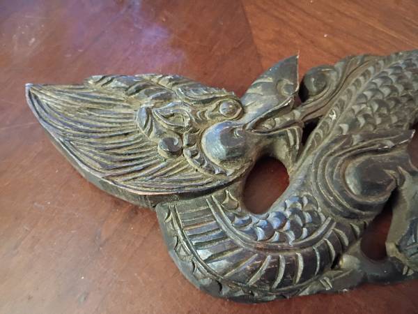 Antique wood carving of a Chinese dragon wall hanging art 15 in long x 3.5 in wide and 1 in thick