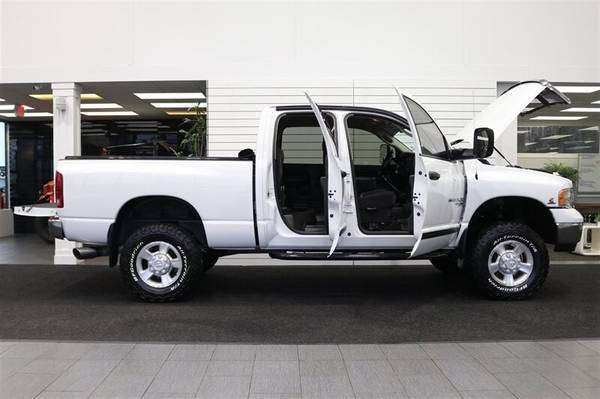 UP FOR GRABS IS A SUPER HARD TO FIND IN THIS SHAPE AND CONDITION AND LOW MILES LIKE NEW CONDITION 2005 DODGE RAM 2500 QUAD CAB SHORT BED 2005 DODGE RAM 2500 SLT 4X4 EQUIPPED WITH 5.9L TURBO CUMMINS HIGH OUTPUT AND IMPOSSIBLE TO FIND 6-SPEED MANUAL TRANSMISSION, LOADED WITH ALL OPTIONS OFFERED BY DODGE FOR THE YEAR, LIKE NEW INSIDE AND OUTSIDE, NO SIGNS OR RECORDS OF ANY ACCIDENTS OR DAMAGES EVER, NO MAJOR DENTS OR SCRATCHES AT ALL, LIKE NEW INTERIOR FREE OF ANY RIPS OR TEARS OR ANY BROKEN PLASTICS, THE UNDER CARRIAGE SHOWS NO SIGNS OF EVER BEING DRIVEN IN MUD OR SNOW AT ALL AND IT IS 100% RUST & CORROSION FREE. THIS RAM IS A GREAT SURVIVOR, HAS SPENT IT'S LIFE WITH SAME OWNER TILL END OF 2024, NEVER MODIFIED OR ABUSED, SECOND OWNER OWNED IT FOR 1 YR AND SOLD FOR HEALTH ISSUES. WE JUST DID A NEW 3" LEVEL KIT ON IT AND ALL NEW UPGRADED BILSTEIN 5100 SERIES SHOCKS ALL THE WAY AROUND, NEW BF GOODRICH KO3 10-PLY TIRES ALL THE WAY AROUND AS WELL. THE BED HAS NEVER HAD A 5TH WHEEL OR GOOSENECK INSTALLED AND IS PROTECTED BY A SPRAY IN BED LINER, THE ORIGINAL PAINT SHOWS AS NEW AND IS FREE OF ANY CLEAR COAT ISSUES OR FADING PROBLEMS. IT IS EQUIPPED WITH 6-PASSENGER SEATING, TOWING MIRRORS, RUNNING BOARDS, TINTED WINDOWS, FOG LIGHTS, POWER SEAT, REAR SLIDER, A NEW TONNEAU COVER, HUSKY ALL SEASON FLOOR MATS ON TOP OF ORIGINALS THAT HAS NEVER BEEN USED, THE DASH IS ALSO IN EXCELLENT CONDITION AND HAS NO ISSUES AT ALL, THE TRUCK IS ODOR FREE AND SHOWS AS NEW INSIDE. THE PREVIOUS OWNER JUST DID A NEW SUSPENSION SERVICE INCLUDING NEW BALL JOINTS / TIE RODS / NEW BLUE TOP STEERING BOX , HE ALSO JUST HAD NEW BRAKES & ROTORS AND FLUSHED ALL FLUIDS AS WELL. THERE IS NO KNOWN MECHANICAL ISSUES OR ANY OIL LEAKS AT ALL, THIS IS THE PERFECT EXAMPLE OF A GREAT WELL CARED FOR SURVIVOR. IT ALSO COMES WITH ALL ORIGINAL BOOKS AND MANUALS AND ALL ORIGINAL KEYS.
