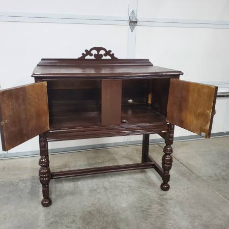 Gorgeous Solid Wood Entry Cabinet With Mirror. 36.5" wide x 17.5" deep x 39.5" tall. $125 cash only. Call Christian