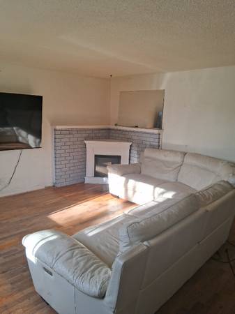 Thick white leather sectional with three electric recliners, two on the ends and one in the middle, both work perfectly. It is very comfortable.