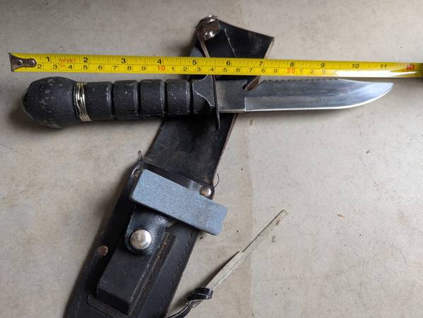 Survival knife. It has gear in the compass handle: saw, firestarter, and fishing tackle.